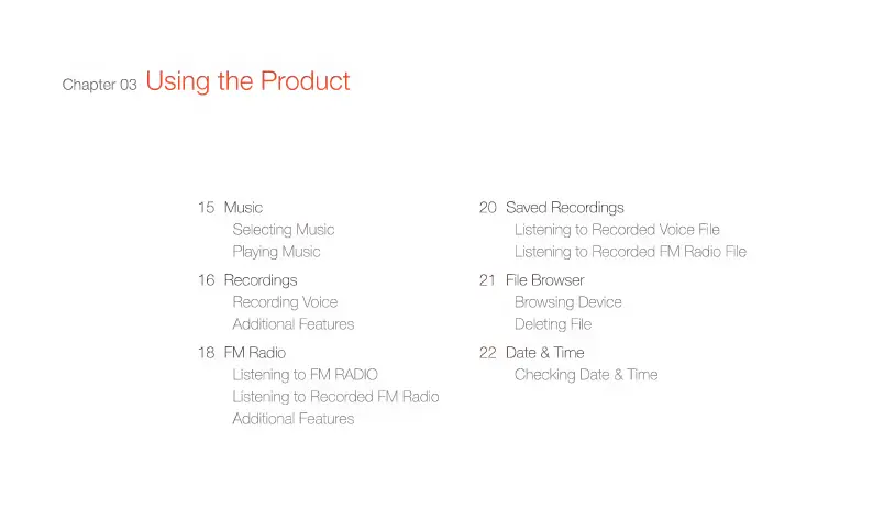 IRiver T5 - Music; 16 Recordings; FM Radio; File Browser