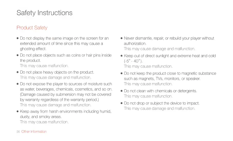 IRiver T6 - Safety Instructions; Product Safety