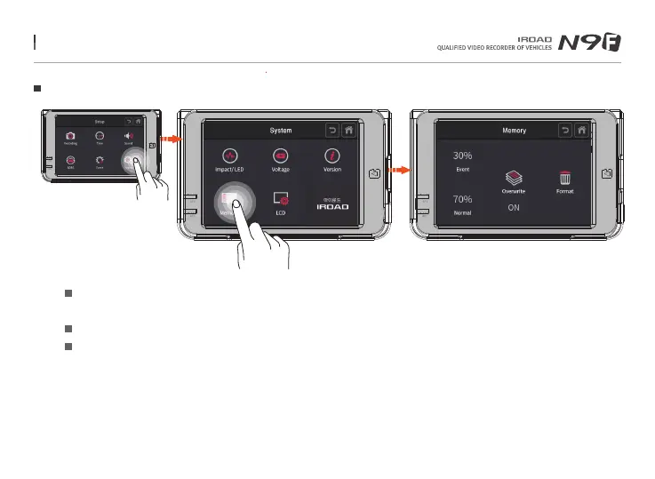 Tap on Memory button to memory control, Overwrite on/off, Memory allocation and formatting are available
