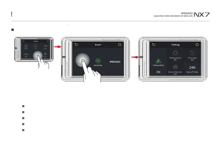 It can set up the Parking Recording, Impact / Motion, Time Lapse and Time.