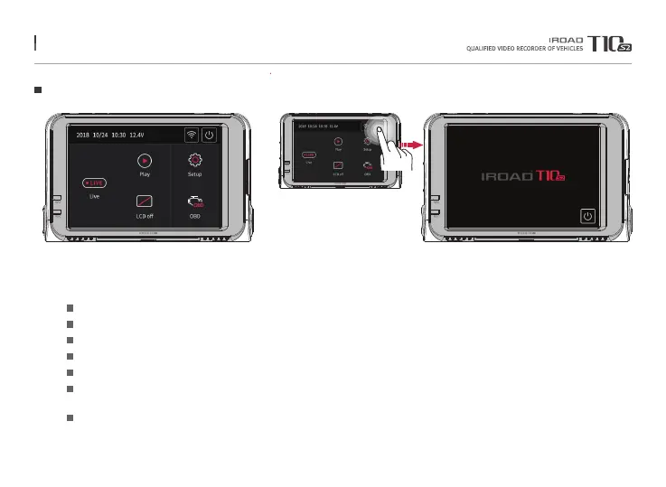 Touch LCD OFF button to turn off the screen. The screen is turned back on by touching the black screen.