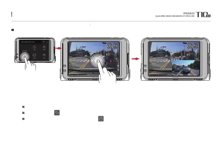 While playing back a front camera recording, touch the screen once to convert to the rear camera view.
