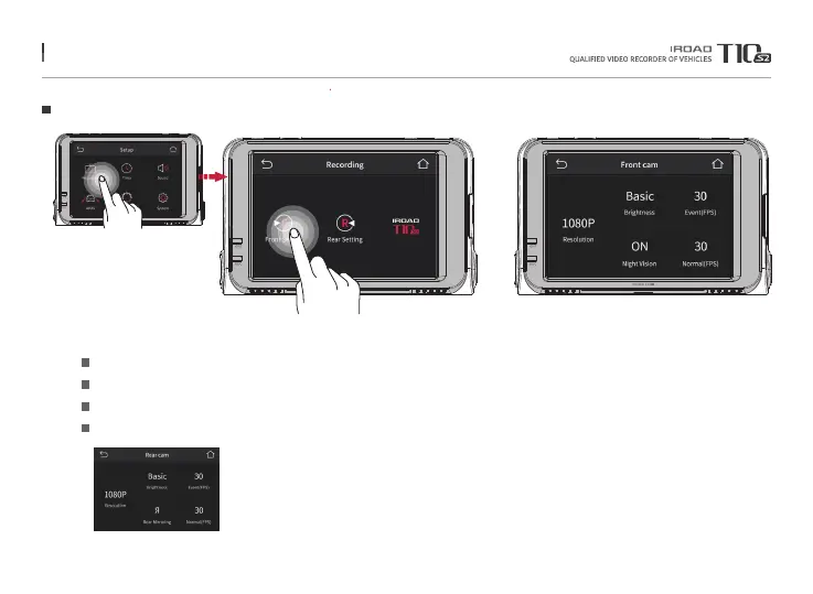 Press 'Front cam' button to adjust the resolution, brightness of the camera, Night Vision and FPS of event and normal mode.
