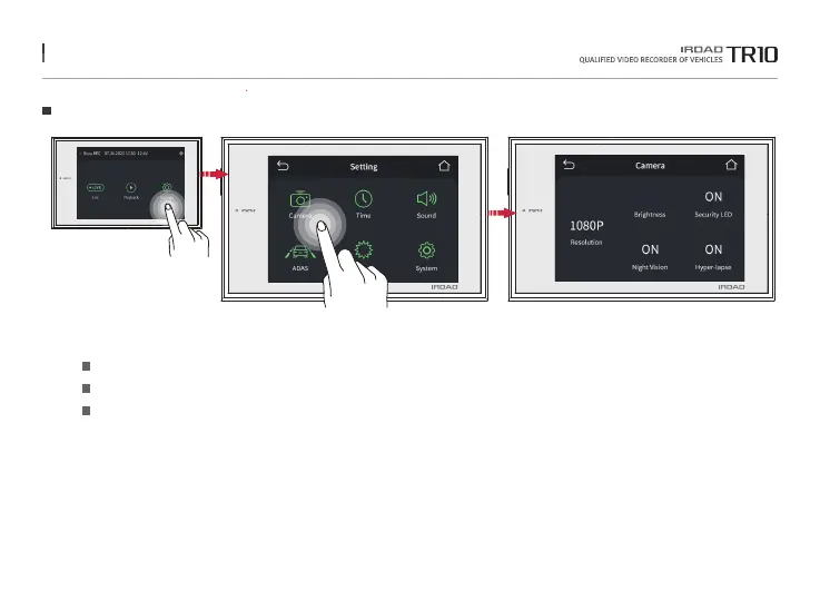 Press 'Camera' button to adjust the brightness, night vision, security LED, and hyper lapse settings.