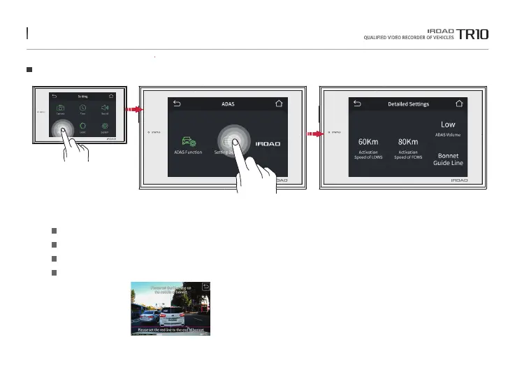 It can set up the speed for LDWS, FCWS. Thereby touch a detailed setting button as above picture.