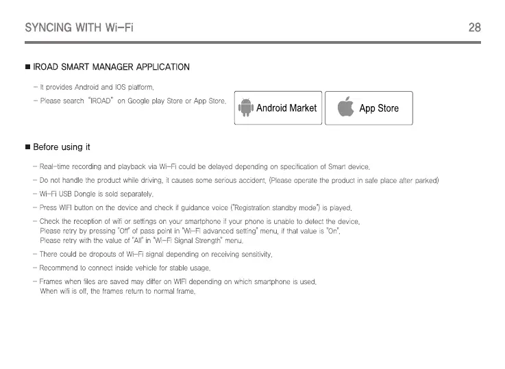 IROAD V7 - Syncing with Wi-Fi; IROAD Smart Manager Application; Before Using It