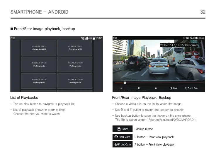 IROAD V7 - Front;Rear Image Playback, Backup
