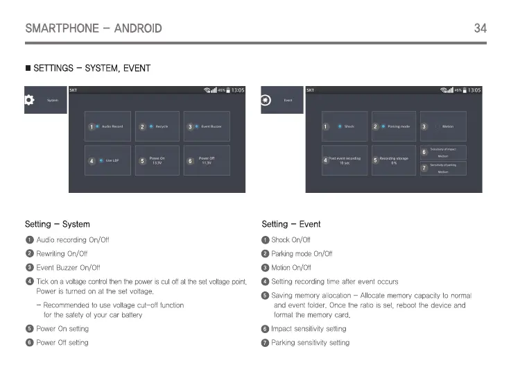 IROAD V7 - Settings - System, Event