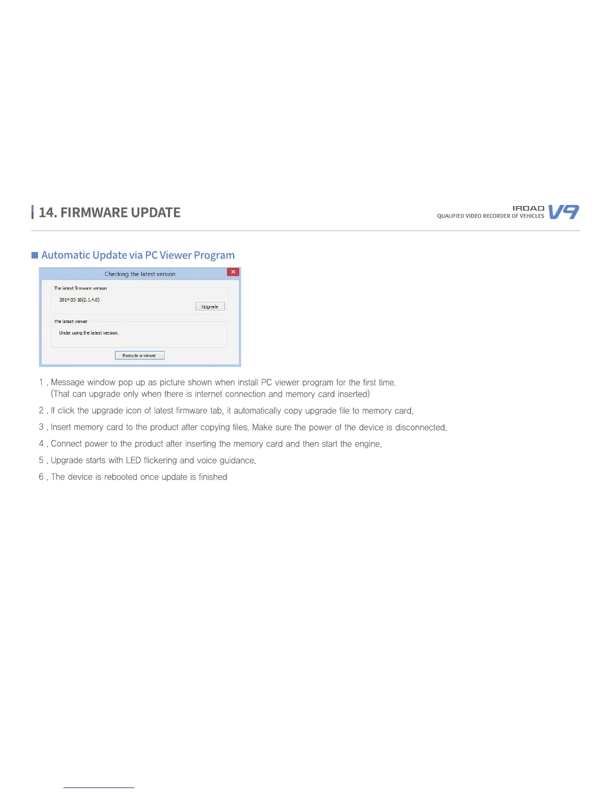 IROAD V9 - Firmware Update Procedures; Automatic Update via PC Viewer