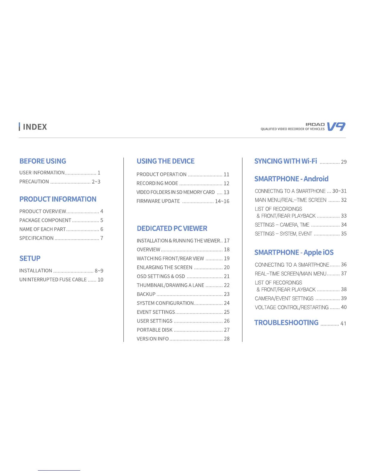 IROAD V9 - Index