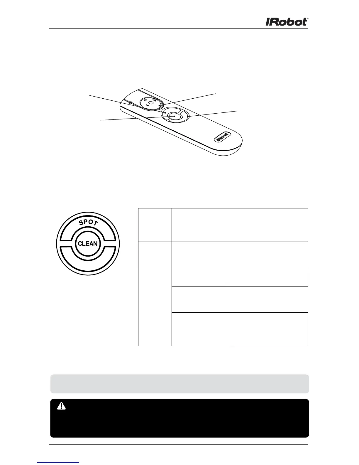 The Remote Control lets you conveniently control Roomba’s functions.