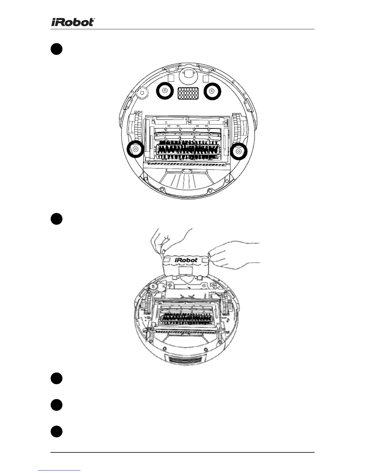 Unscrew the four screws shown below and remove Roomba’s bottom