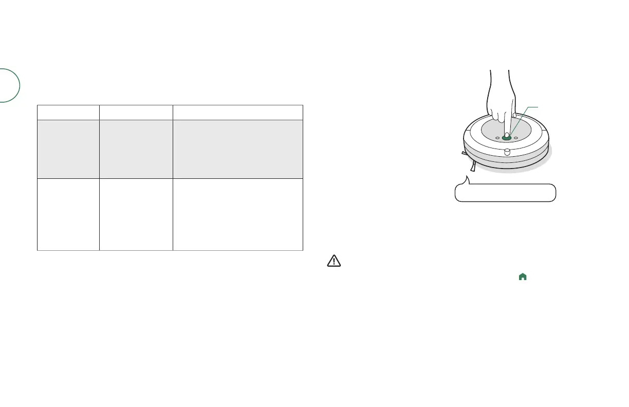 • 將機器人從 Clean Base 自動集塵座取下並按住 10 秒,關 閉 電 池。所