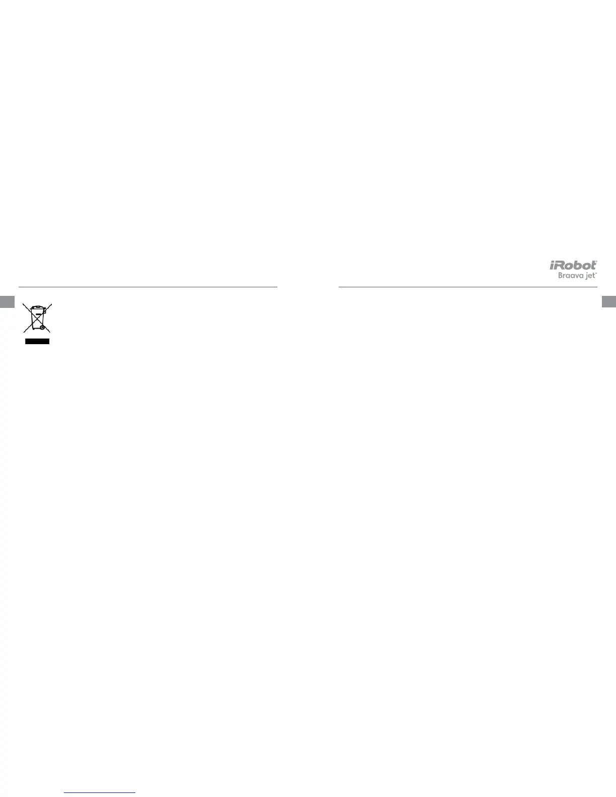 • Braava jet has electrical parts. Do not submerge it in water. Clean with a cloth