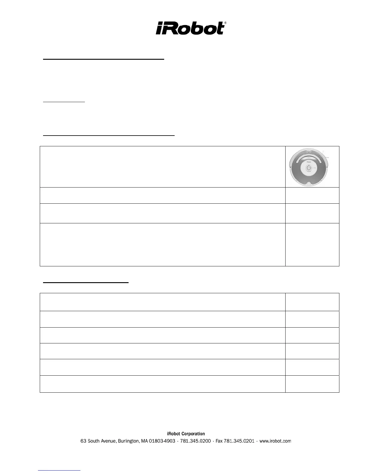 Roomba, battery and all accessories to a service center.