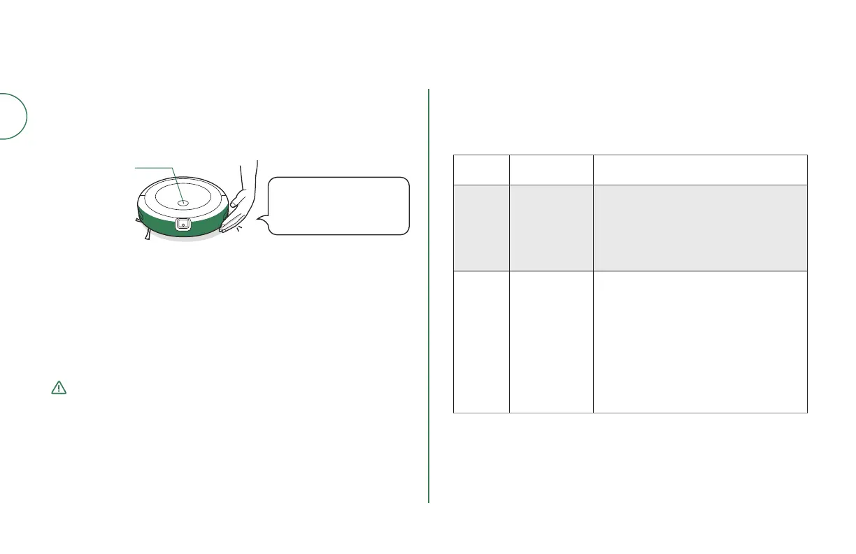 • Wyjmij robota ze stacji dokującej i przytrzymaj przycisk sprzątania przez 3 sekundy,