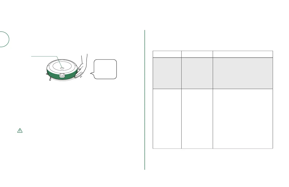 • Il robot riproduce un segnale acustico e accende la spia circolare di colore