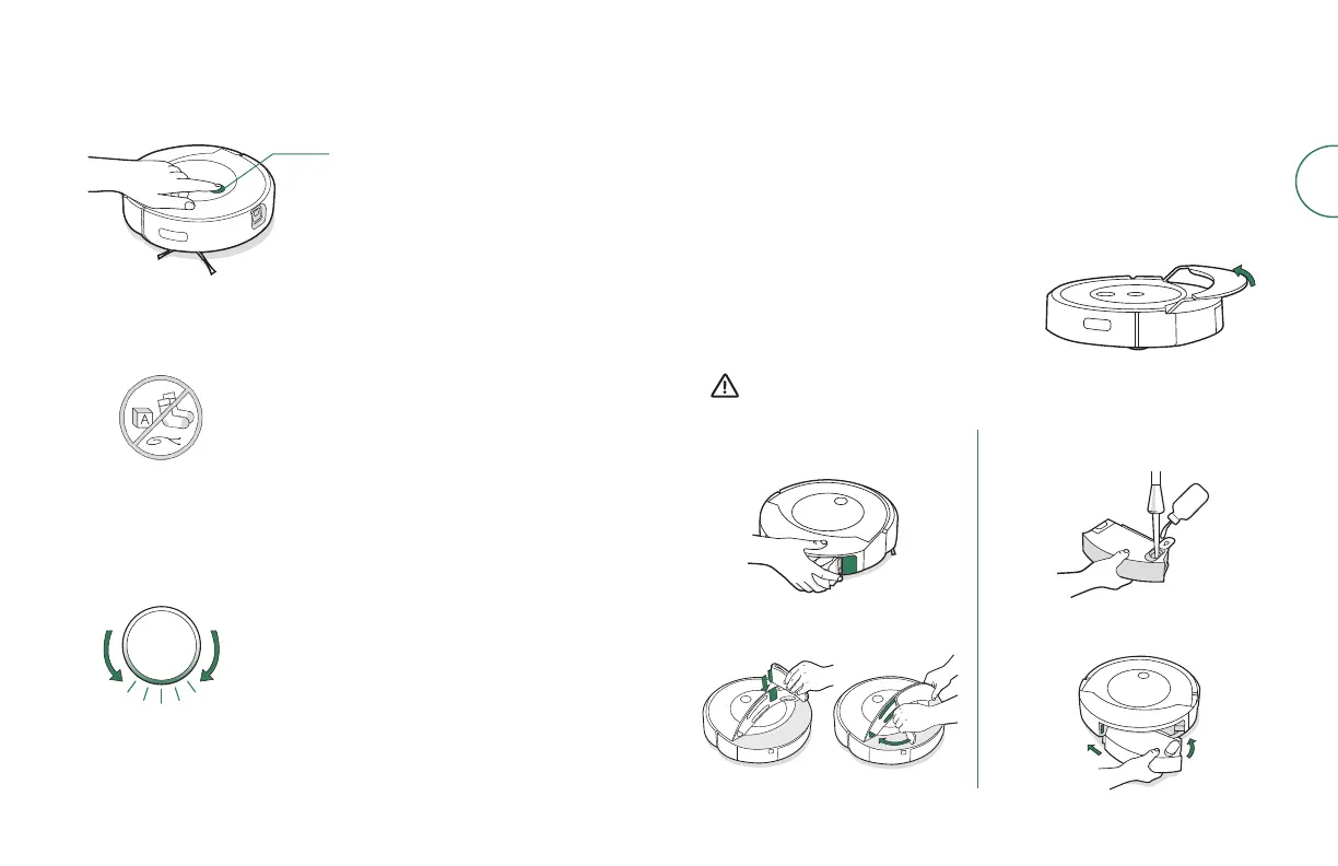• 로봇청소기로 진공 청소 작업만 시작하려면 청소 버튼을 누르기 전에 탱크를