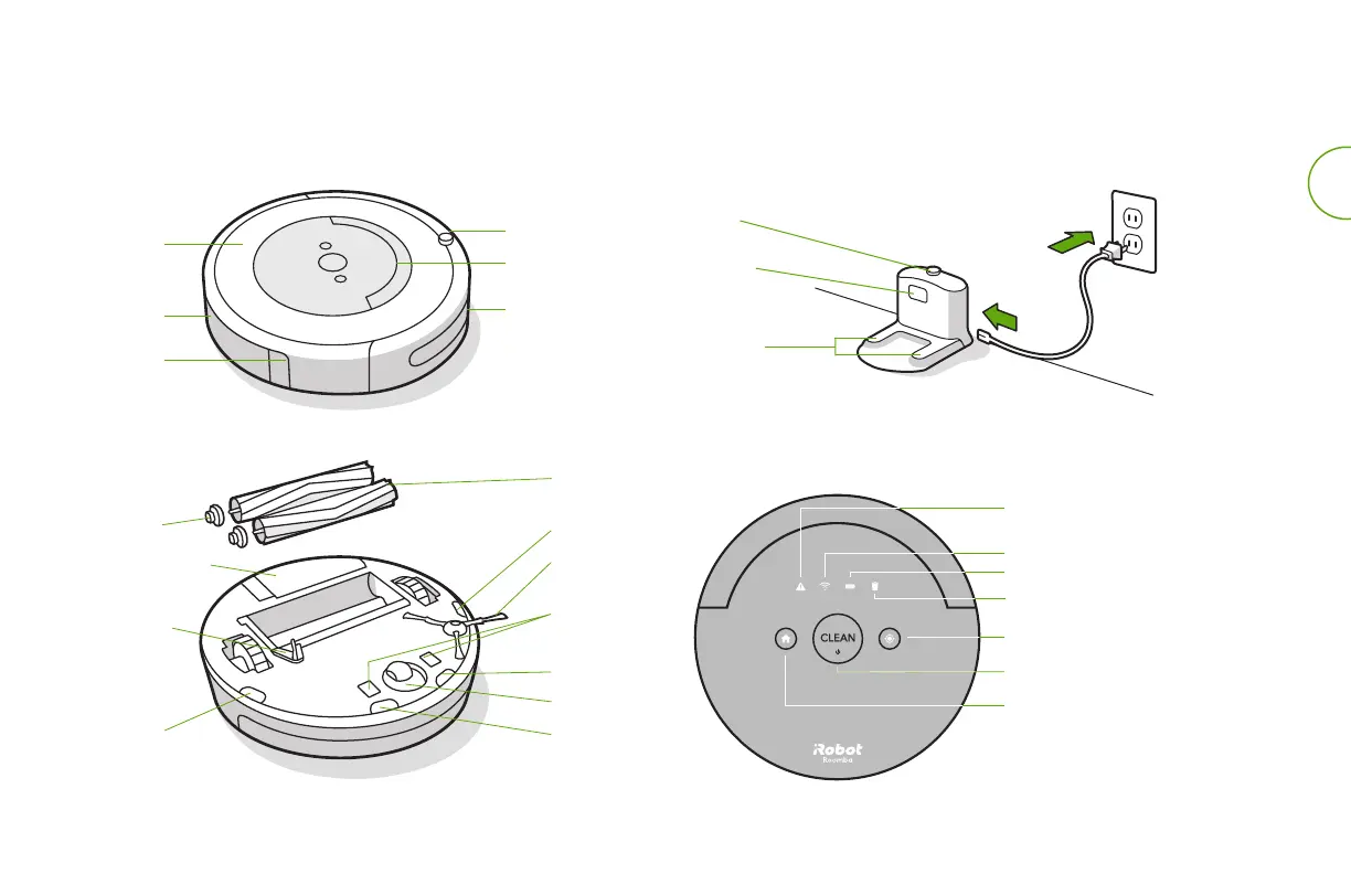 iRobot Roomba e6 - About Your Roomba; Robot Vacuum; Bottom View; Buttons and Indicators
