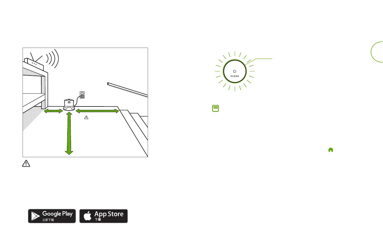 •如果機器人在清掃過程中需要重新充電,將會返回 Home Base。
