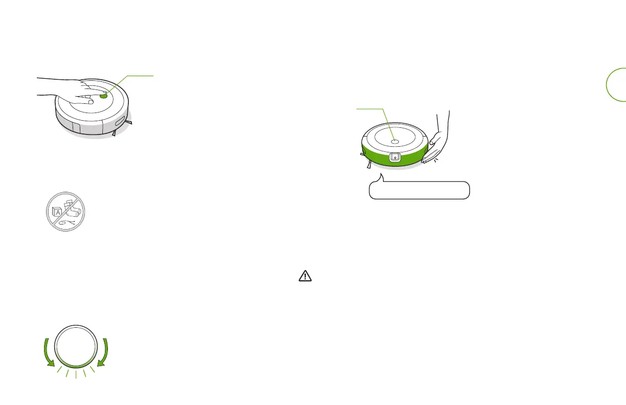 • Turn o the battery by removing the robot from the charging station and holding