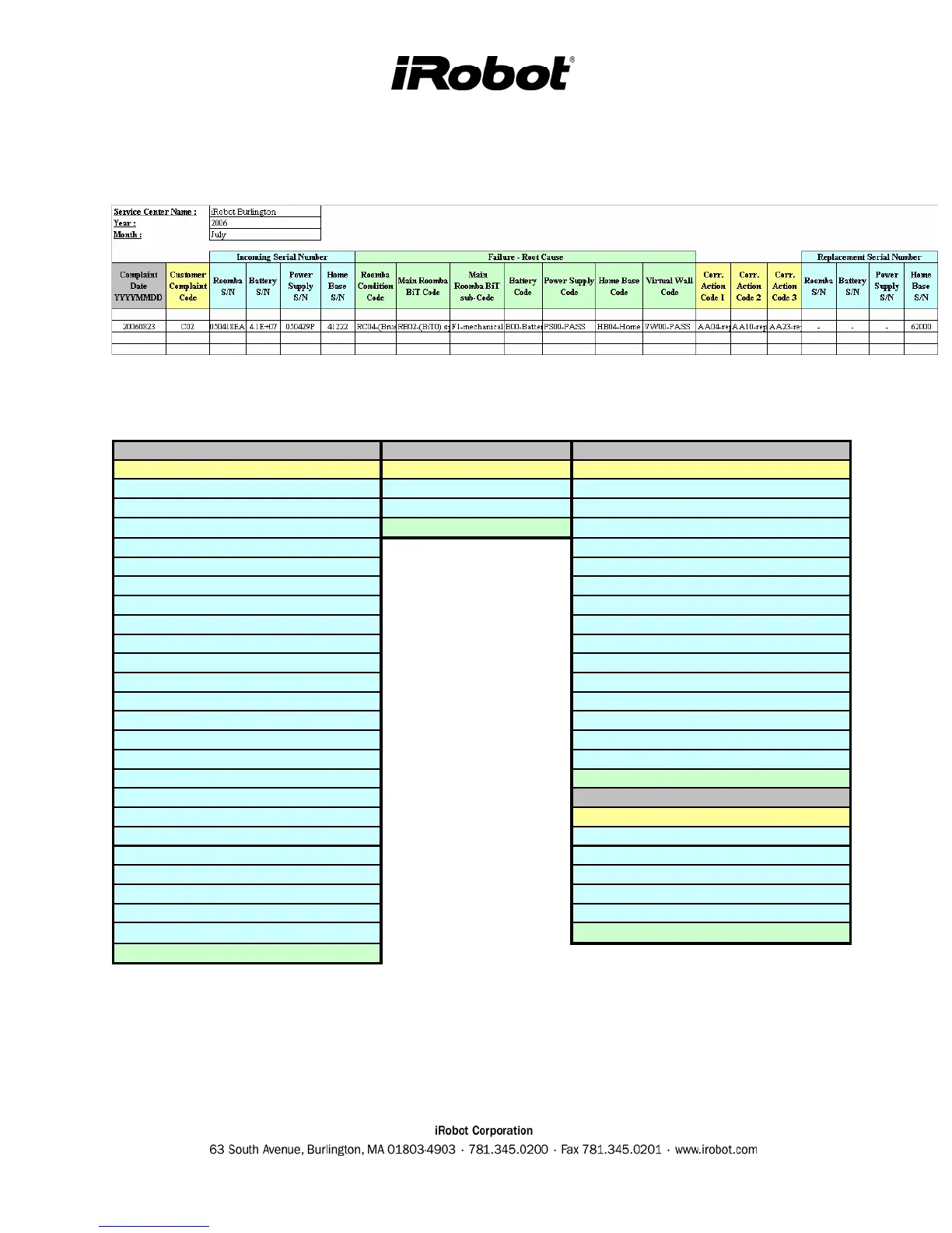 Appendix C: Roomba Code List