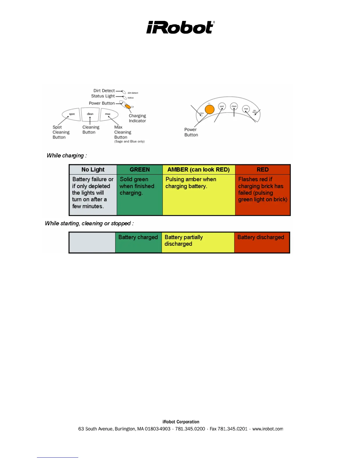 iRobot ROOMBA SCHEDULER - Appendix N: User Interface; User Interface: POWER Light