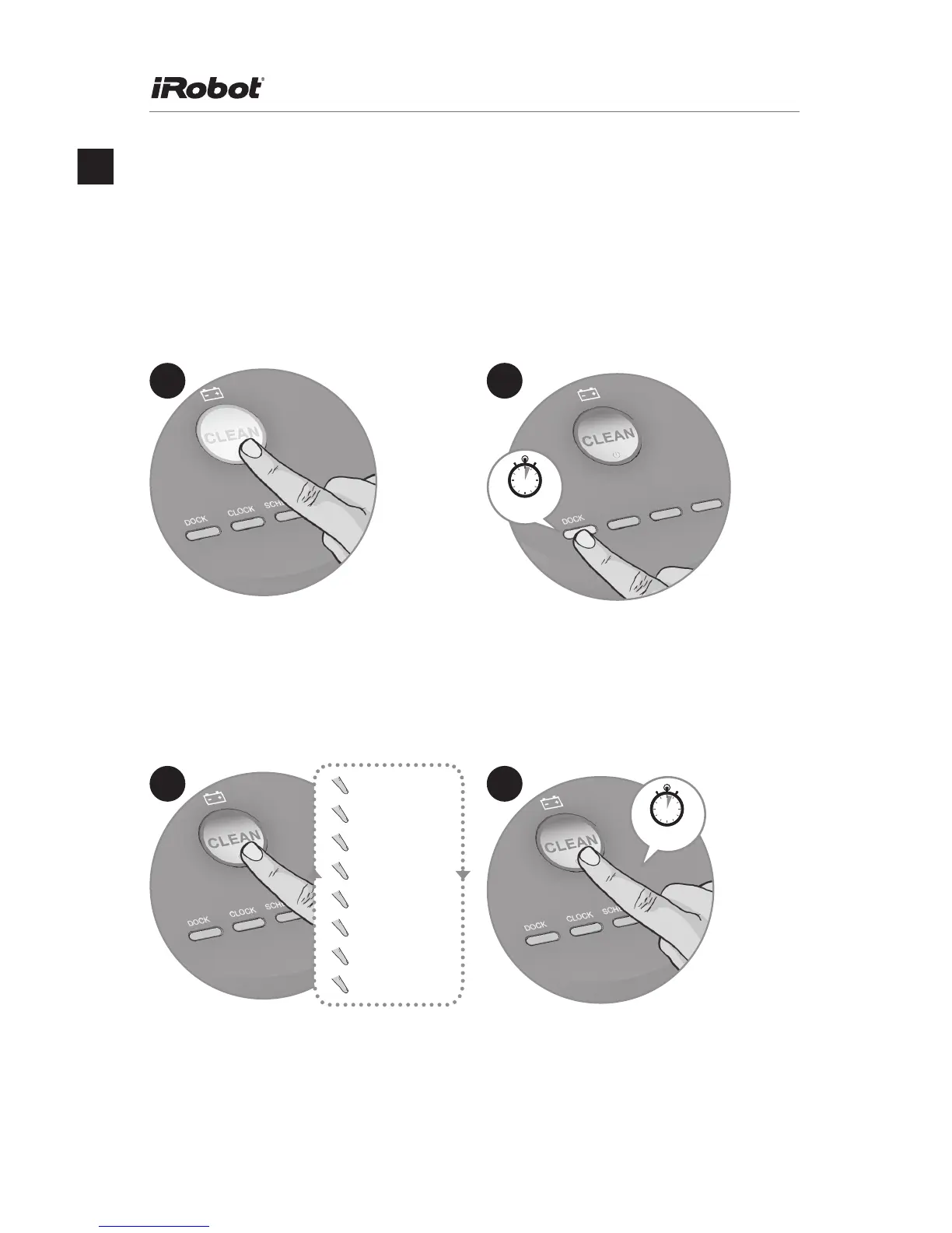 Press and hold DOCK until Roomba