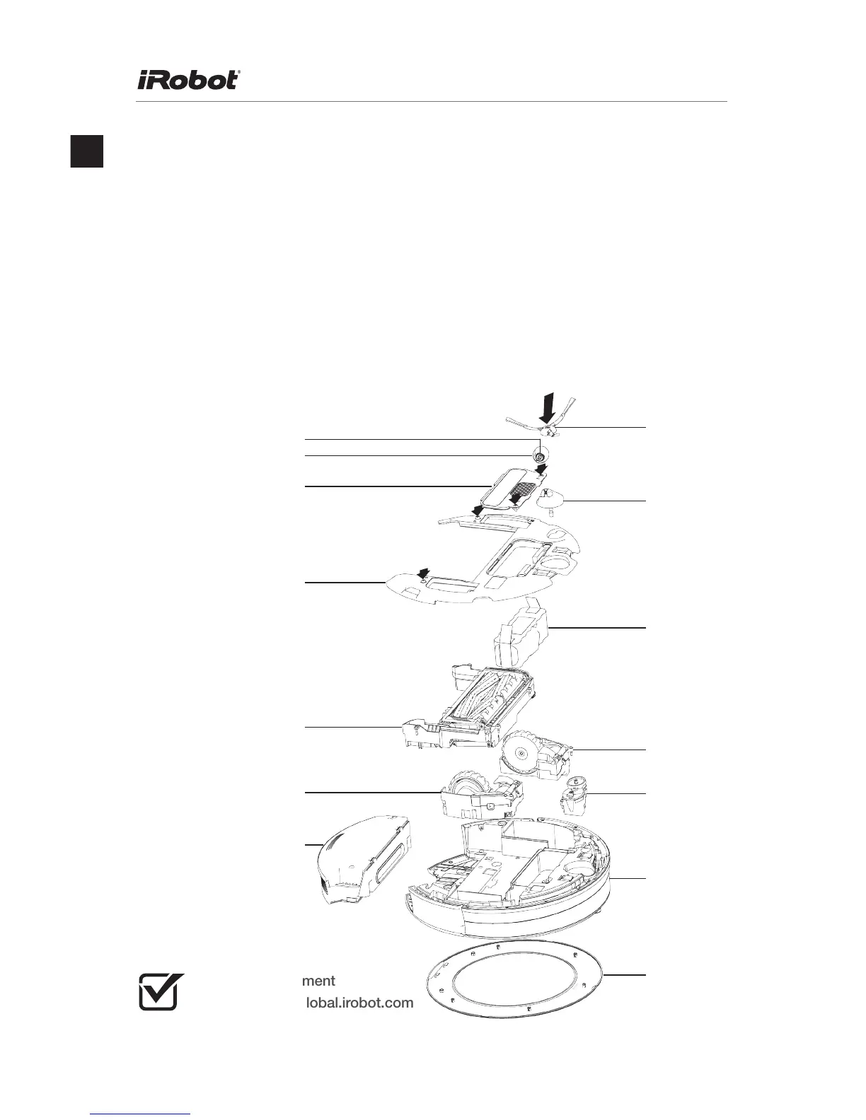 To access Roomba’s replaceable modules, remove the following items in this order: