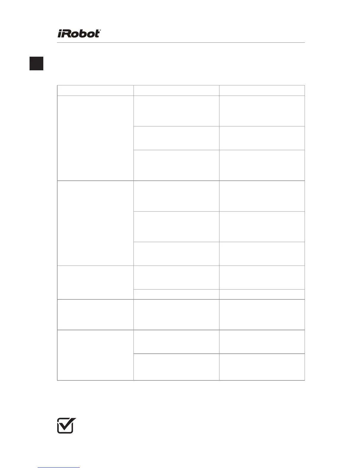 Please refer to the table below to resolve Scooba’s problem.