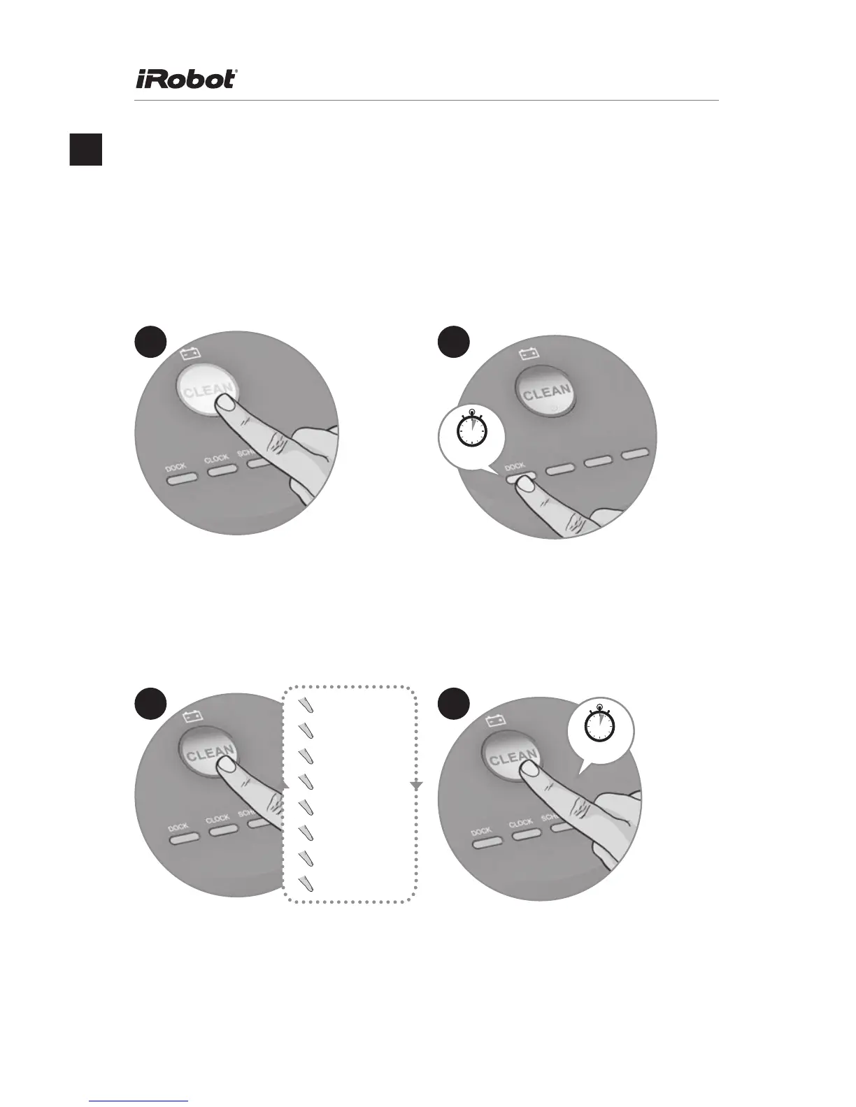 Tryck på CLEAN för att sätta på Roomba.