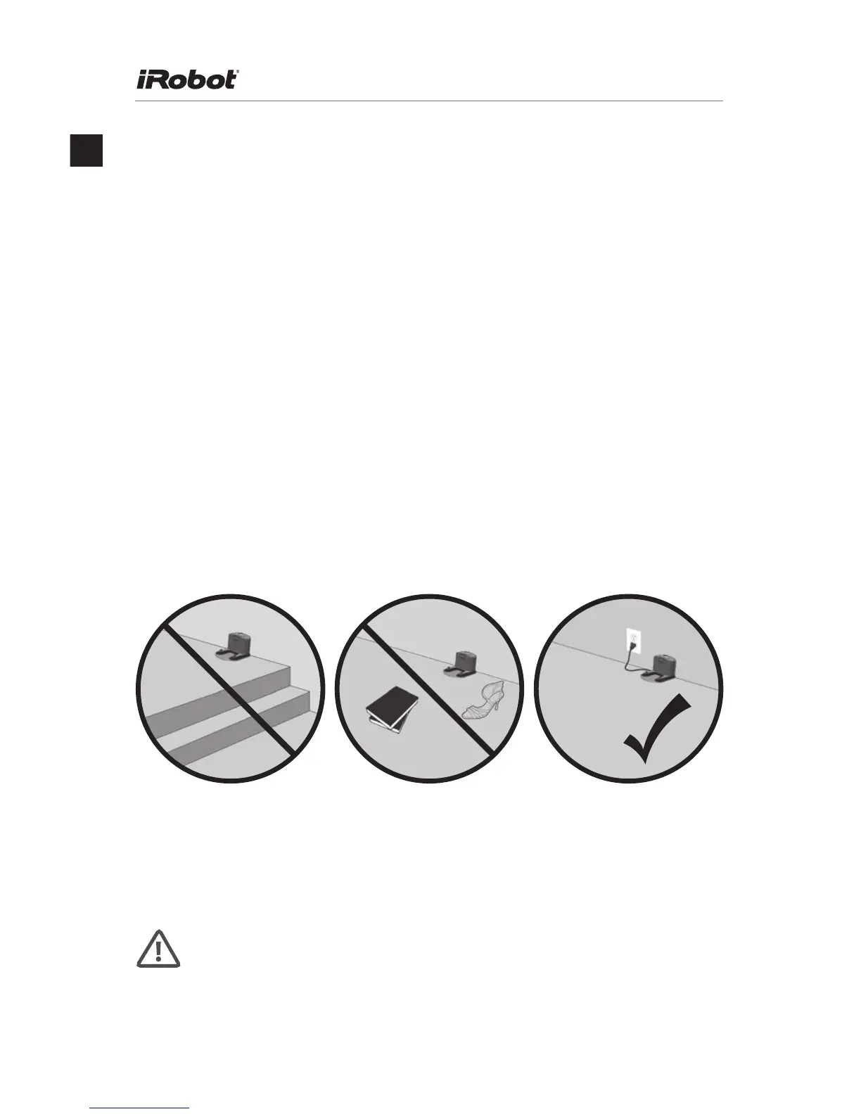 den är placerad minst 1,2 m från en ev. trappa och att inget hindrar Roomba från att