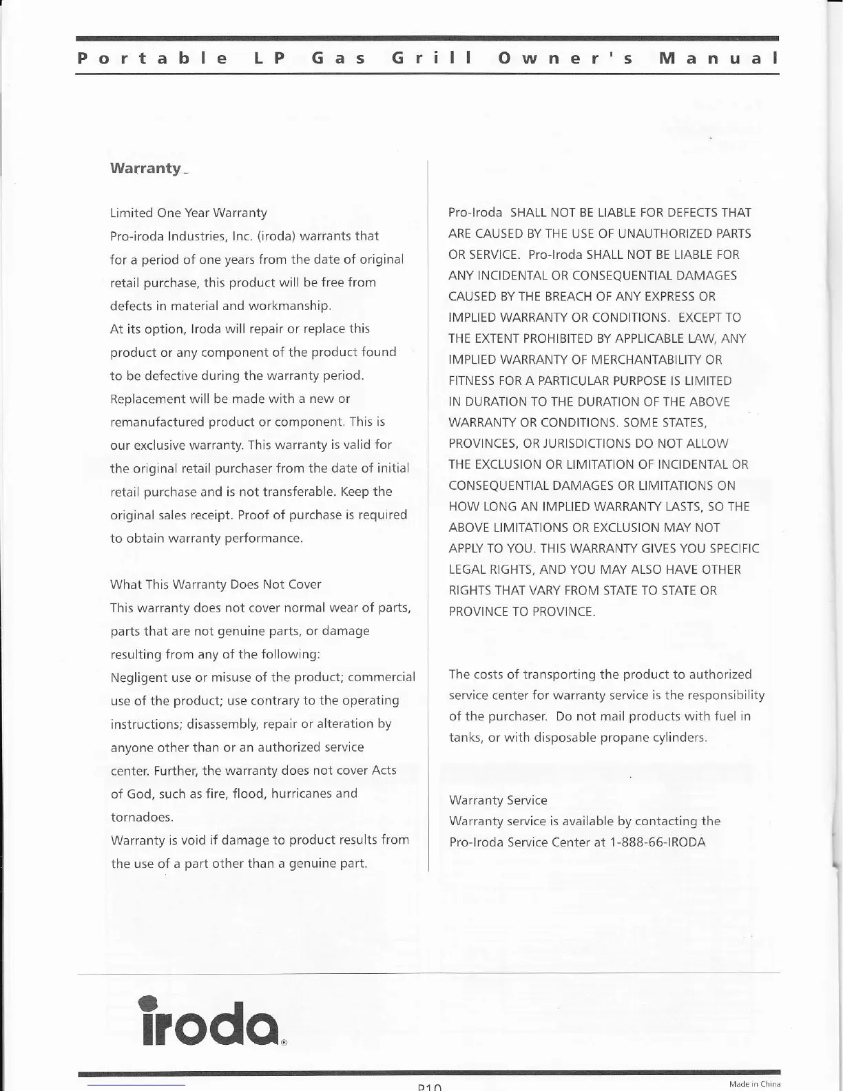 OR SERVICE. Pro-lroda SHALL NOT BE LIABLE FOR