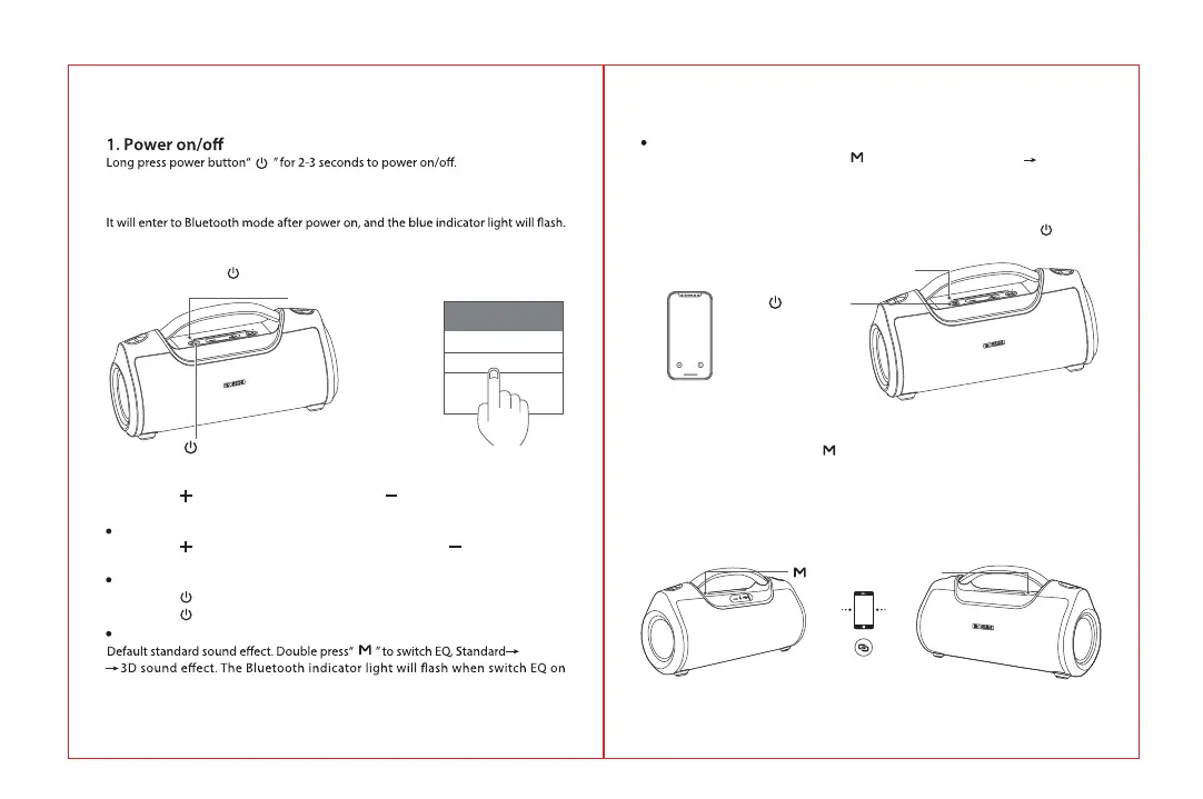 Remark: 1. Two speakers are needed, and both must be on Bluetooth mode.