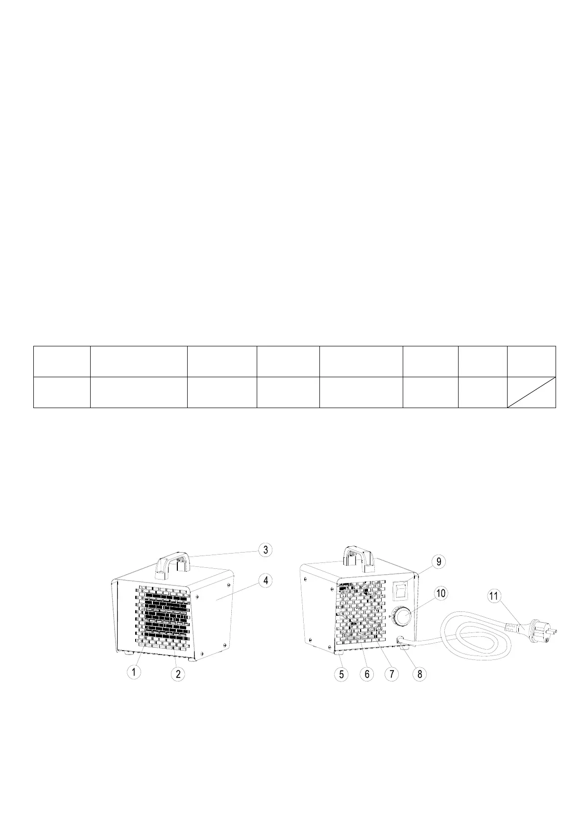 ①PTC verwarmingselement ② luchtmond ③handvat ④behuizing