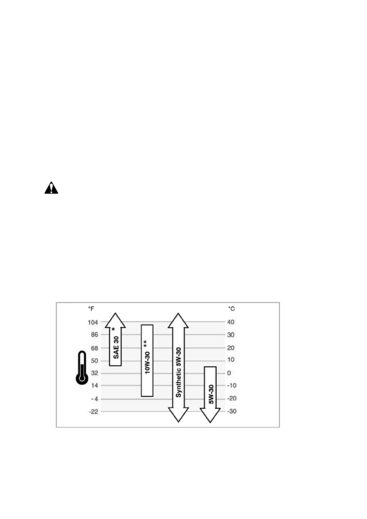 . Outdoor temperatures determine the proper oil viscosity for the engine. Use the chart to select the best viscosity