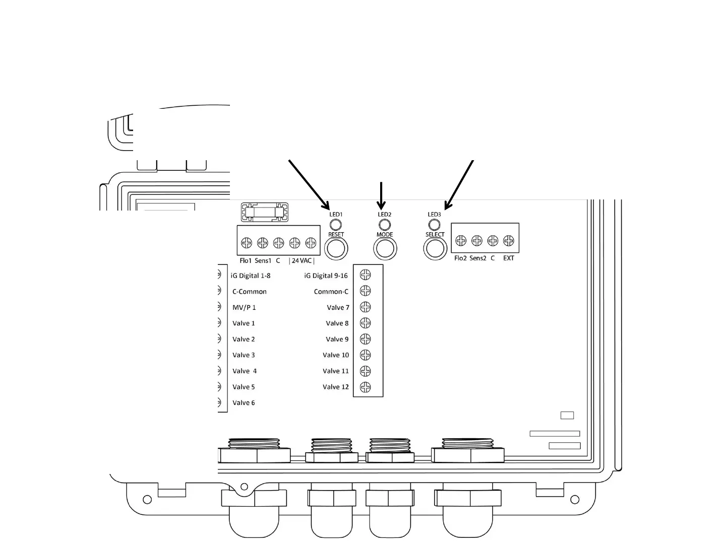 IrriGreen 2 - Controller Indicator Lights; LED 1 - Green Light Status; LED 2 - Blue Light Status; LED 3 - Red Light Status