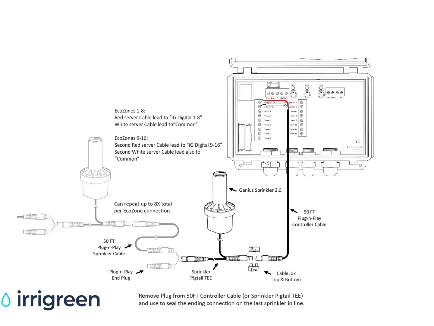 IrriGreen 2 - Connecting Digital Sprinklers; Daisy-Chaining Sprinklers; Cable Management