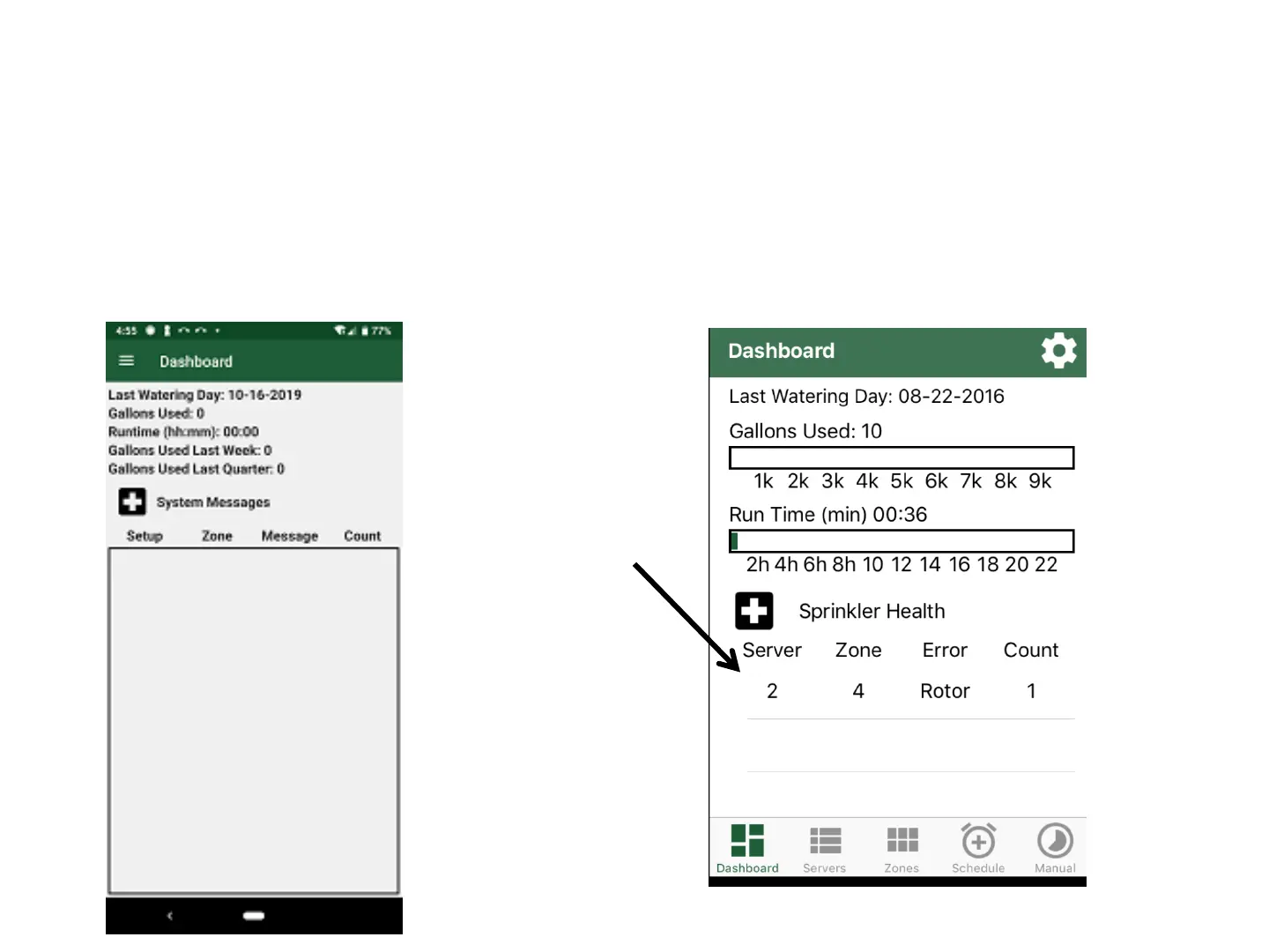 Last Watering Day, Gallons Used Last Watering Event, Gallons