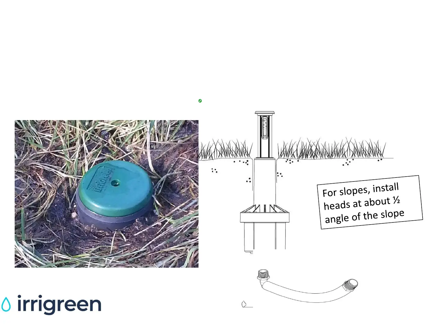 IrriGreen Irrigreen2 - Digital Sprinkler Head Depth; Hole Excavation and Cap Height; Slope Installation Angle