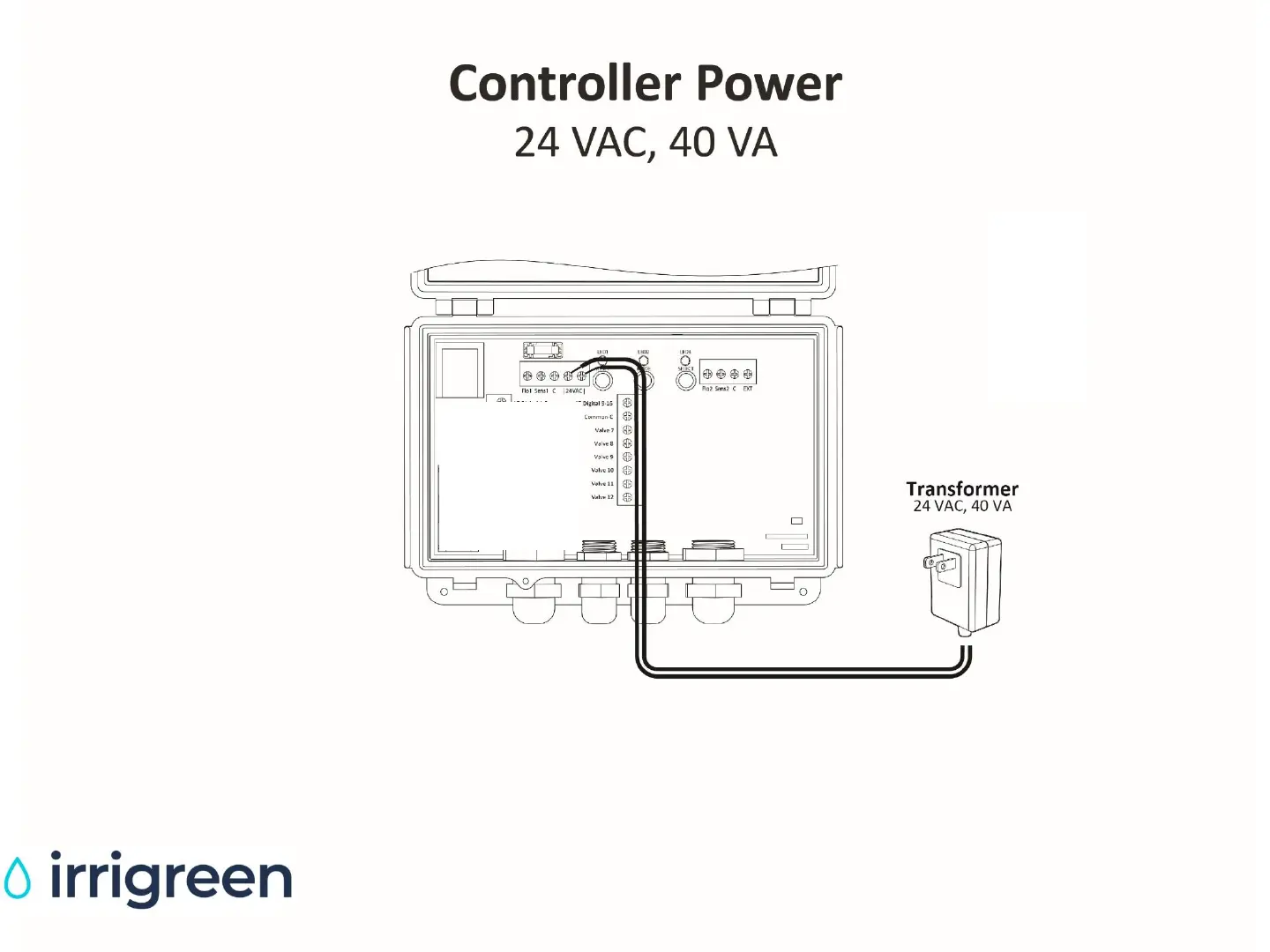 IrriGreen Irrigreen2 - Controller Power Supply; Power Requirements; Transformer Connection