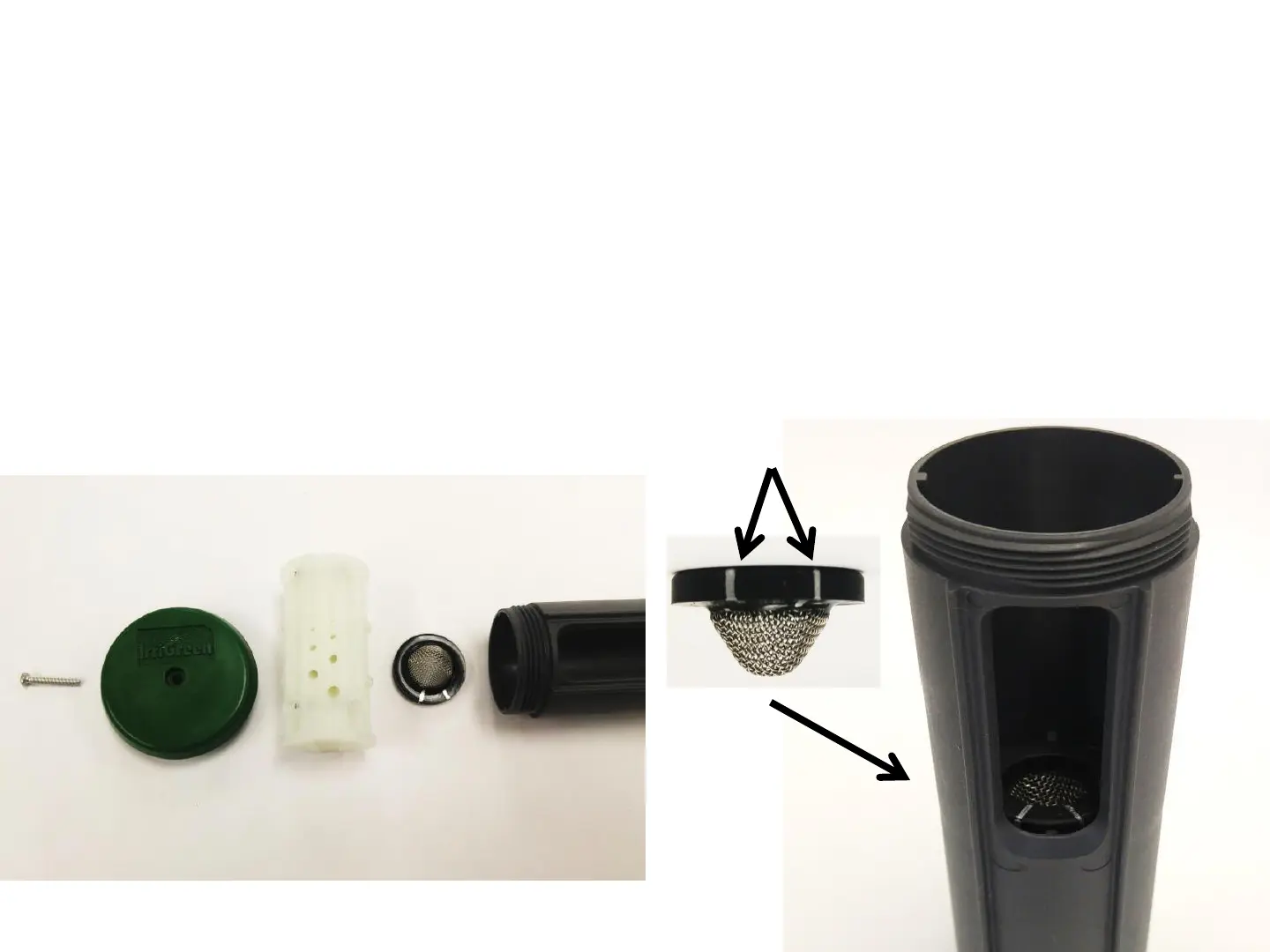 Hand tighten cap back onto riser (NOTE: filter mesh points down)