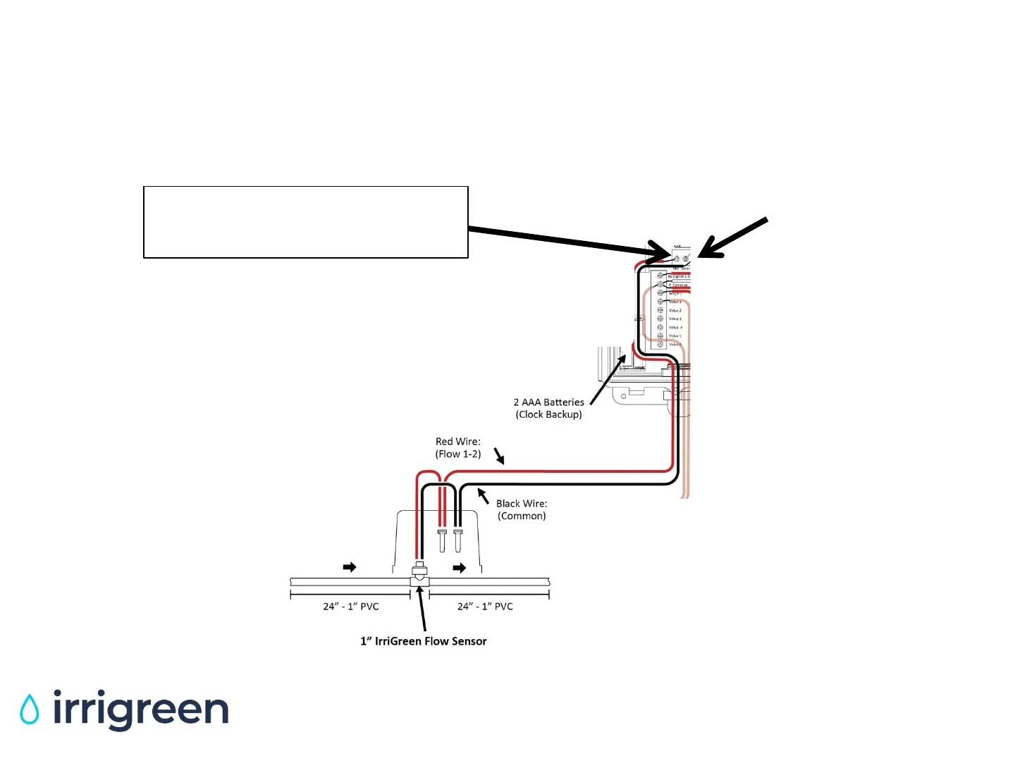 IrriGreen Irrigreen2 - Optional Flow Sensor Wiring; Connecting Flow Sensor to Controller