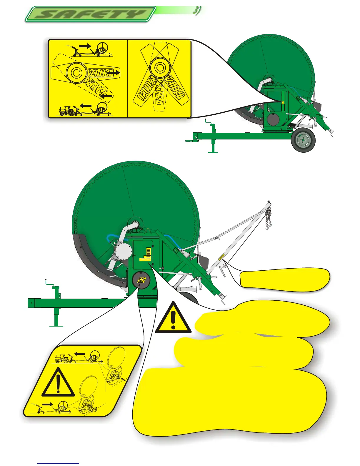 - Do not start the irrigation run if the hose on drum is not wound on