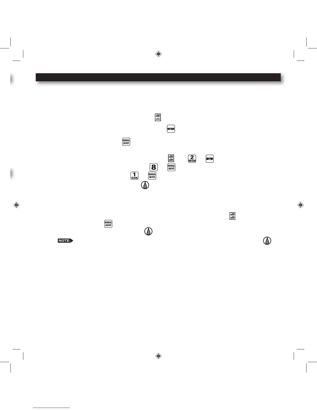 The MC-E provides Rain Off to temporarily suspend the controller’s automatic watering. When Rain Off is activated,