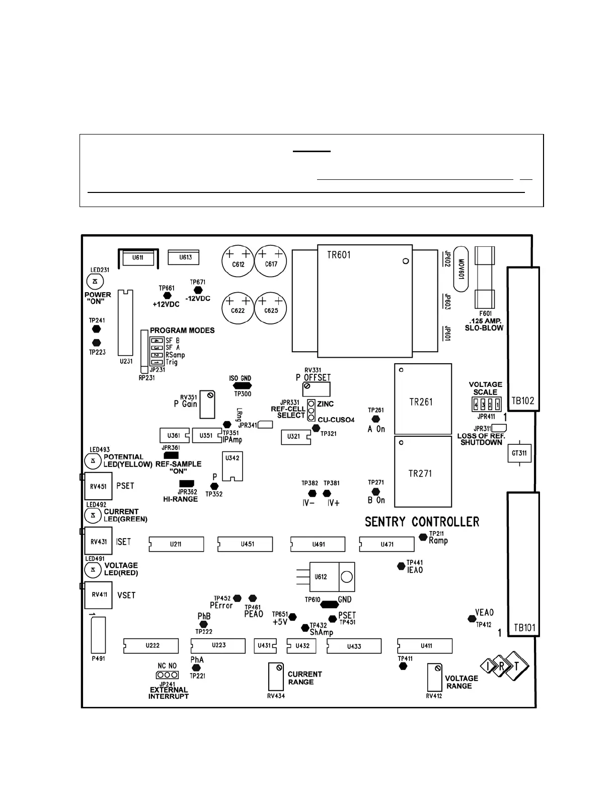 to the following layout of the SENTRY Controller for location of controls and jumpers: