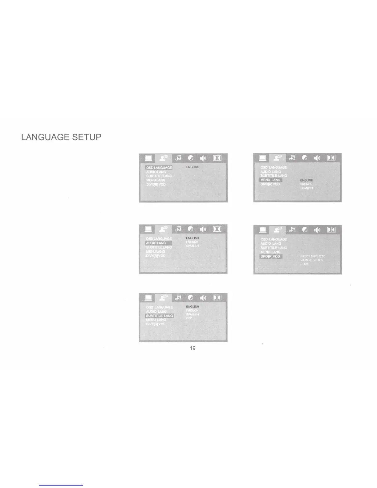 iRV Technologies iRV 34 - Language Setup Options; OSD, Audio, and Subtitle Languages; Menu Language and DIVX