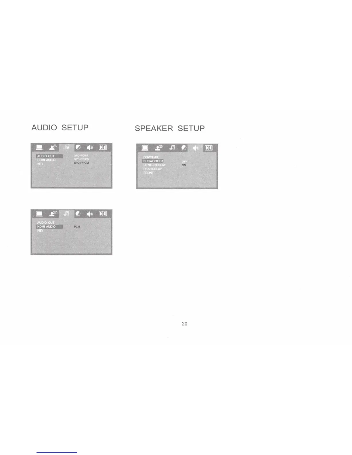 iRV Technologies iRV 34 - Audio and Speaker Configuration; Audio Output Settings; Speaker Setup Options