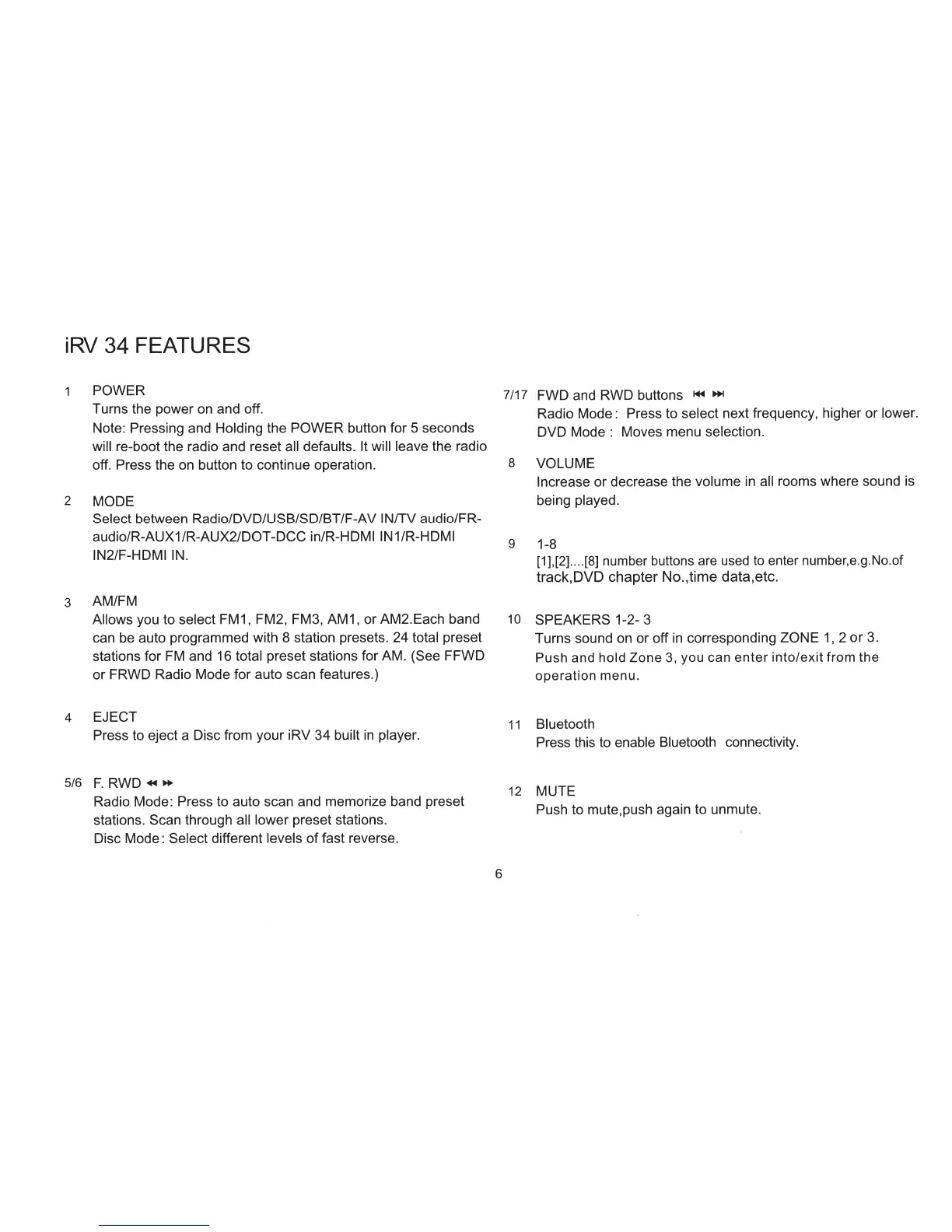 Press to eject a Disc from your iRV 34 built
