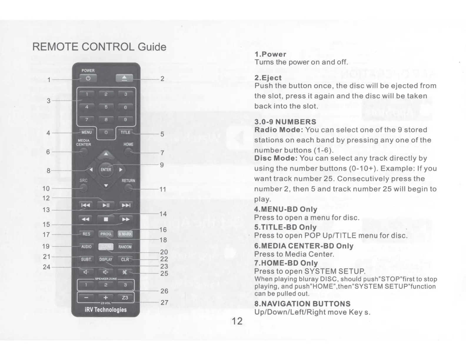 iRV Technologies iRV 70 - Remote Control Guide